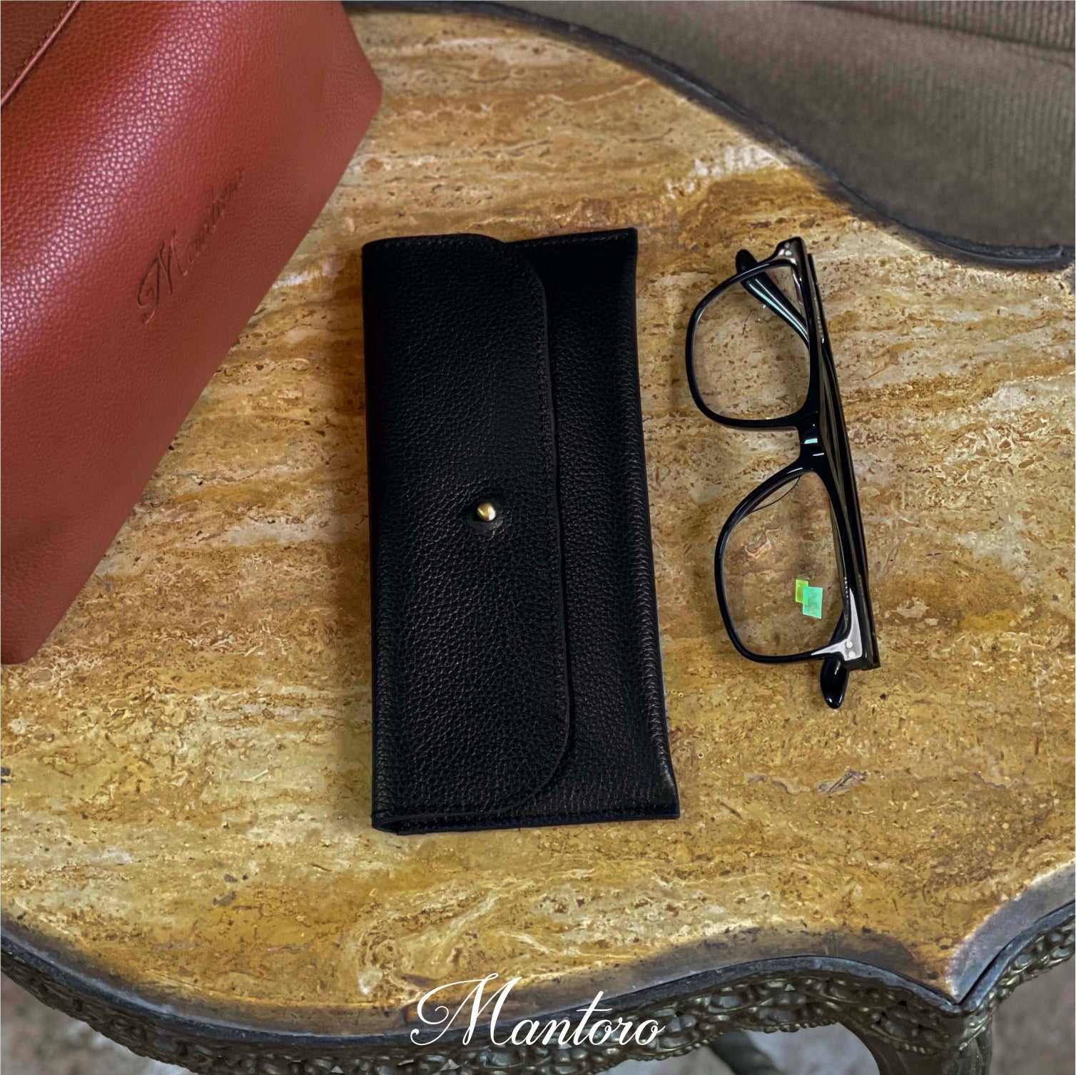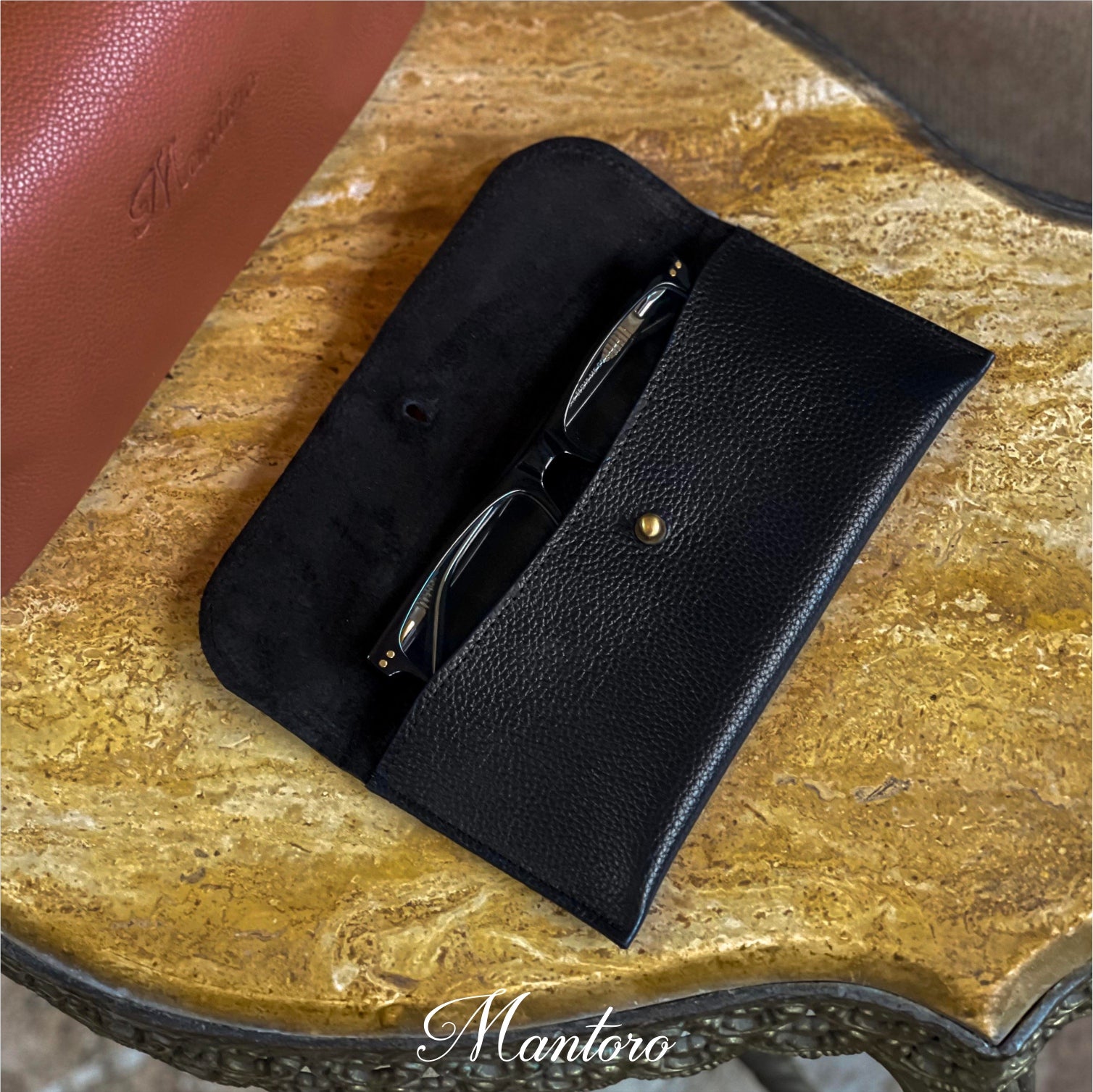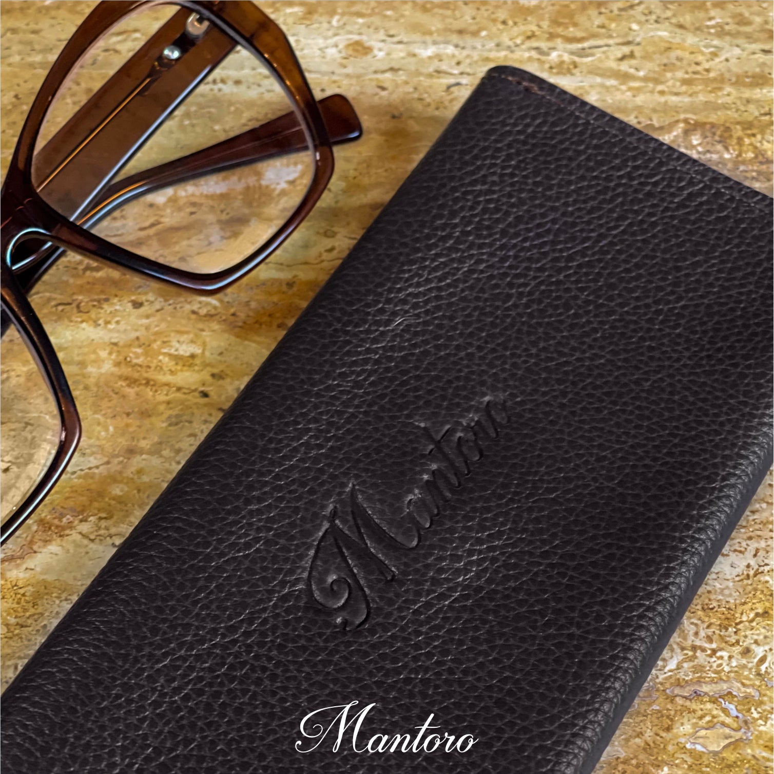 Cowhide case to carry your favorite glasses.